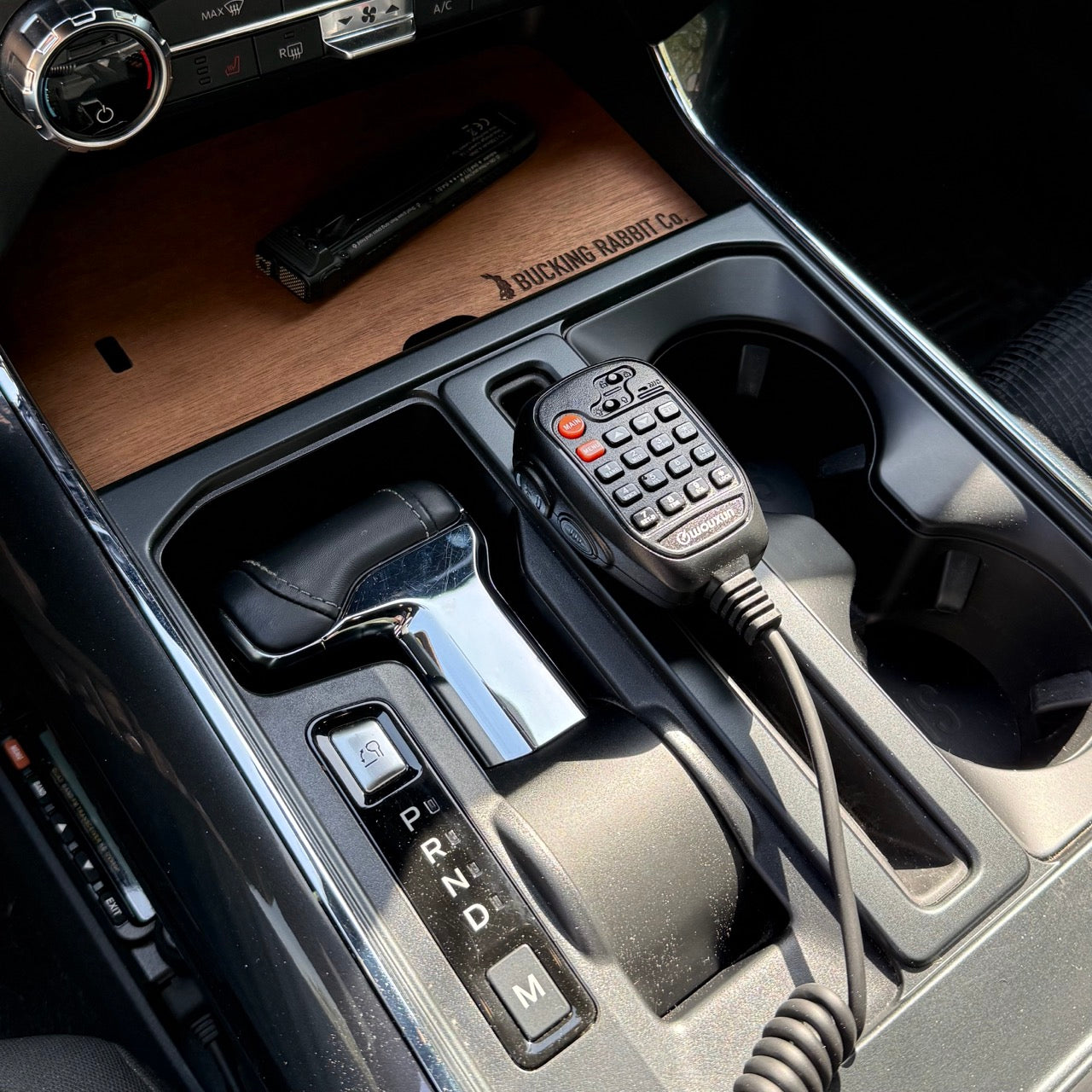 Simple 3D printed product that pressure fits into the long tray between the gear shifter and cup holders. This allows you to magnetically attach a radio mic for ease of use and no drilling or tape. The wedge is printed at 100% infill so has good weight and solid. Printed using PETG.