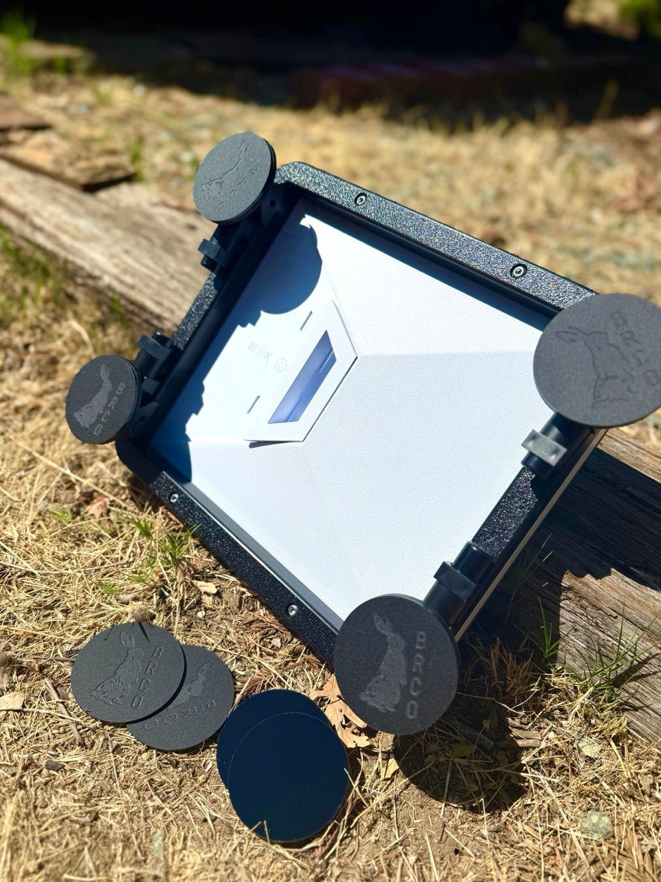 Simplistic minimal design. These 3" rounds are laser cut from 1/8" acrylic and fully protect the suction pad of your 3" vacuum mount suction cups. Simply place the glossy side of the cutout to your vacuum suction pad and vacuum out the air for a tight hold. This allows the suction cups to stay clean and maintain performance when being used.